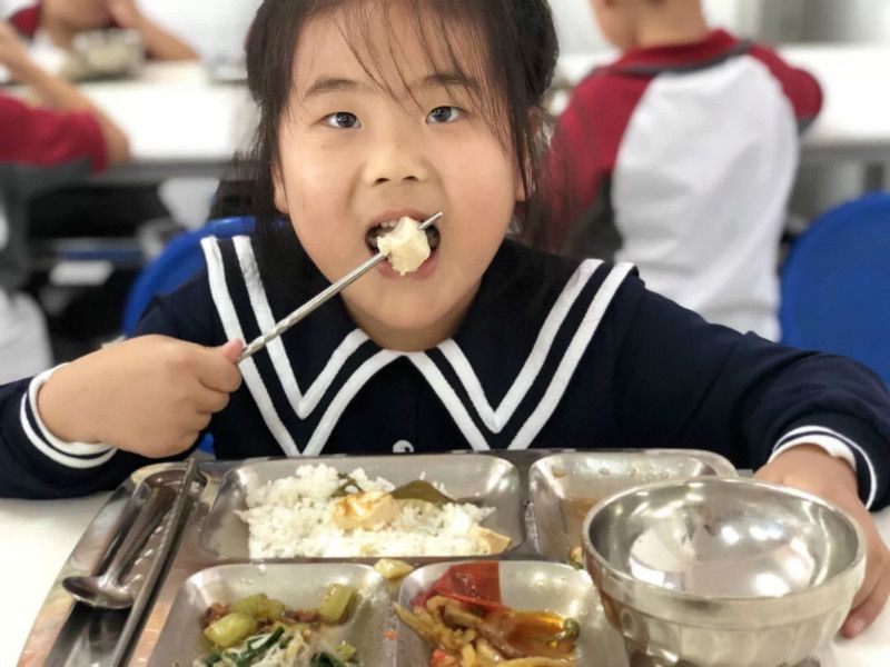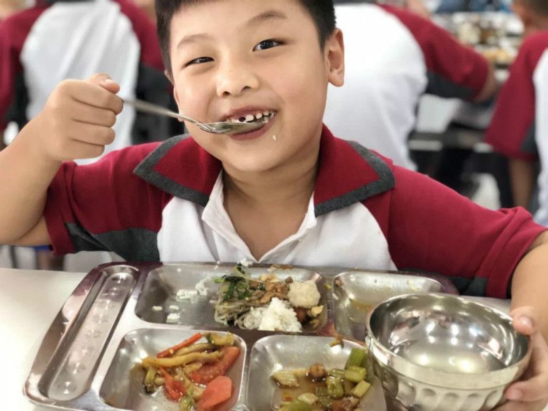 “华英楼”洋溢出阵阵飘香,每当这时,饥肠辘辘的学子们放下书本,排着整齐的队伍,依次来到餐盘前打餐,食堂内井然有序。