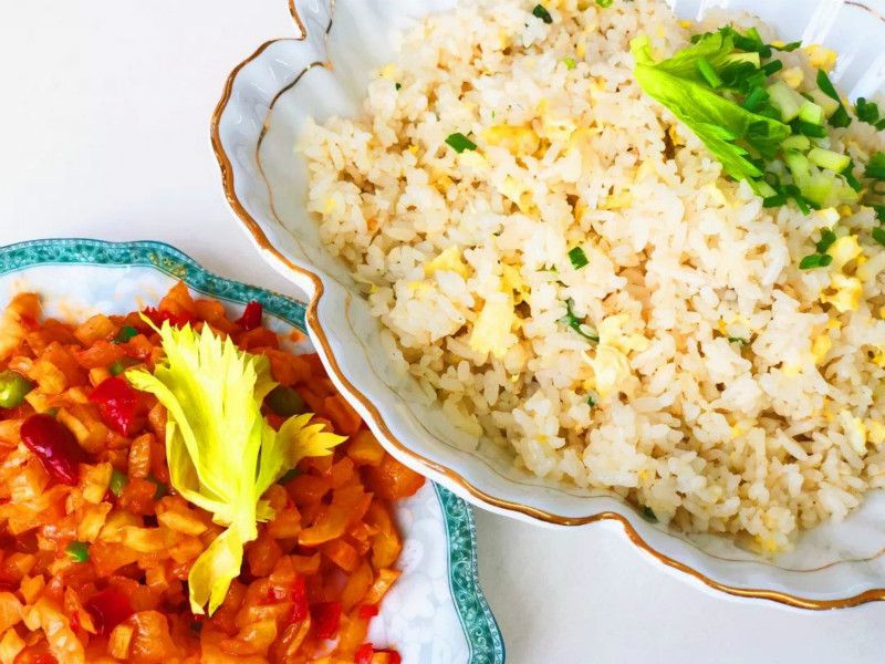红案上整齐码放着各色食材,师傅们穿戴整齐,白色工作服,抄起大勺,将最简单的姜葱蒜,搭配上油盐酱醋。
