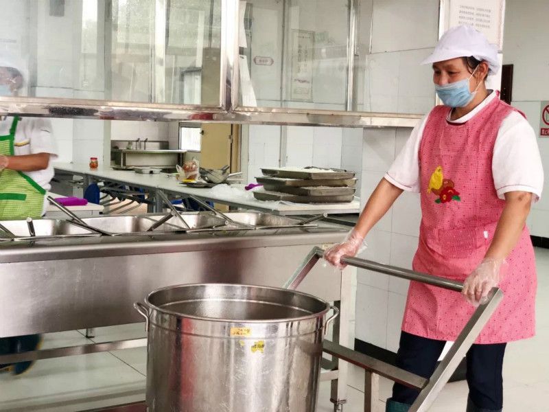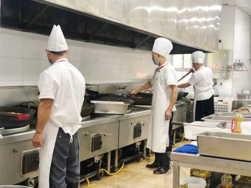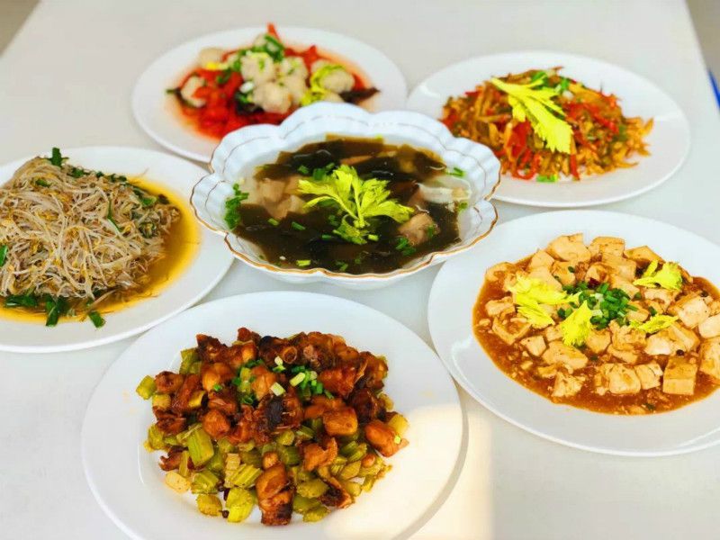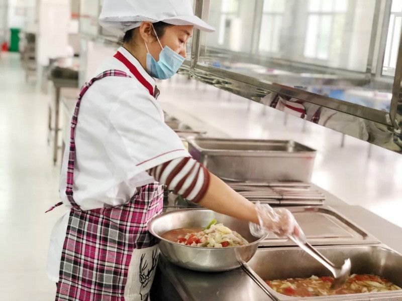 海带排骨汤、玉米烧鸡、肉糜豆腐、韭菜炒豆芽、宫保鸡丁、炕土豆片……素食与肉类完美组合,一日三餐不重样,干净卫生,口味鲜香,厨师们在极致追求理想的道路上从未停歇。