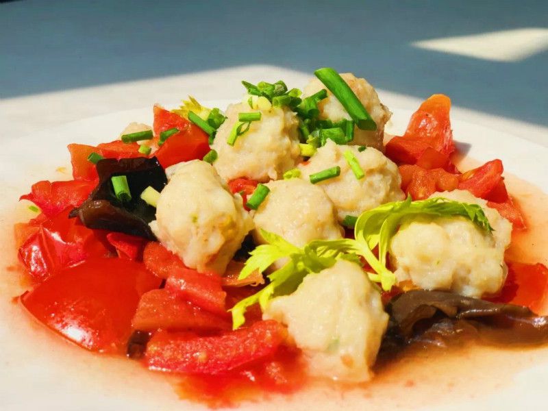新鲜鸡肉洗净切块,放入料理机绞成肉泥,用细竹签剔掉肉筋,加入盐、胡椒粉、生抽、水、淀粉搅拌均匀,盖上保鲜膜冷冻2小时后,经过持续不断搅拌,做出Q弹可口的鸡肉丸,配以新鲜时蔬,是学子们最爱的一道菜品。