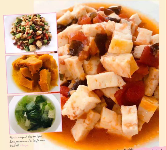 卤小鸡腿、三鲜鱼糕、家常豆腐、豆干芹菜、鱼香肉丝、清炒豆芽、清炒土豆丝......素食与肉类的完美结合,一日三餐,一周七天不重样,干净卫生,色香味俱全。
