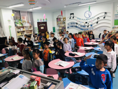二年级学生正在加深对少先队知识的认真学习