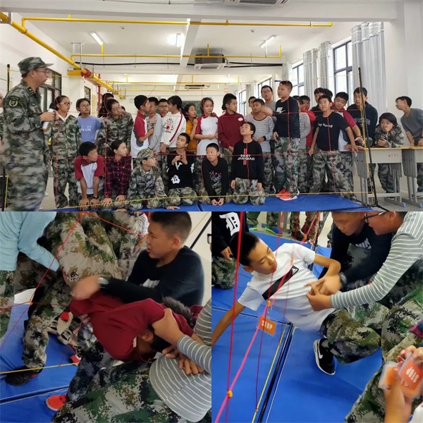 在CS对战中,学生们红黄对战,在游戏中体验团队作战、听从指挥、齐心协力和随机应变等各项团队精神。这是学生们最欢乐、最激烈的游戏时刻。在极速60秒课堂中,学生以小组为单位,组长发号指令,组员通力合作,在60秒内以游戏的方式解读纸牌知识。学生们很好地体验了遵从指令和团队协作的高效性。不断地认识到团队精神的重要性。在“电网”穿越中,“电网”的网口长宽都不过40厘米。要成功穿越“电网”而不“触电”,考验的依然是团队的力量和灵活的身手。学生们有的抱住队友的腰,有的抱住腿,齐心协力让队友顺利通过了“电网”。在“冰海沉船”游戏中,学生们面临“生死”的巨大考验,13块木板是唯一的求生工具。如何借用非常有限的资源保障每一位队友成功生存,极大地考验着集体的智慧和团队协作能力。最终,人人都成功获救,学生们终于明白:“求稳不求急”是制胜的法宝。
