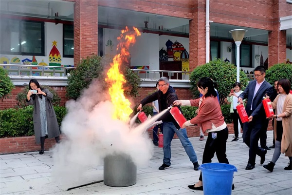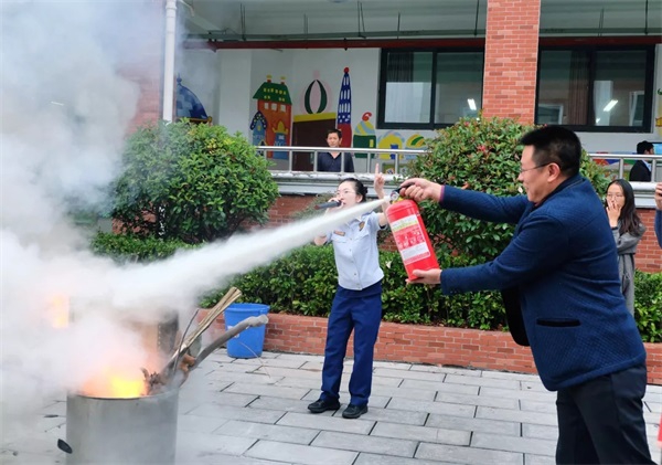 10月23日,高新天问学校教职工在童话广场进行了现场灭火器的使用培训,宜昌市消防救援支队高新大队张烨参谋给老师们做现场指导。每位教师人人现场体验,熟记灭火器的使用方法,将安全铭记于心,防患于未然。