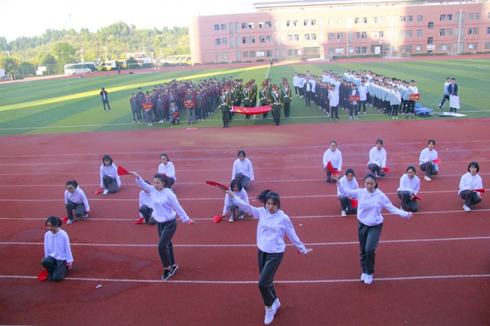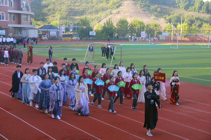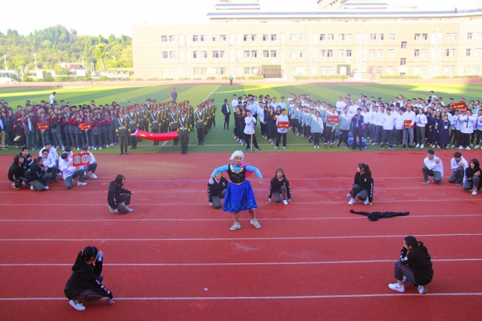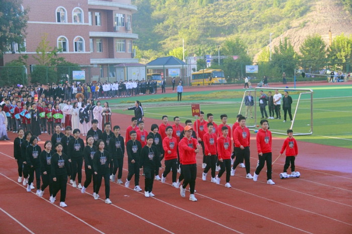 开幕式上,伴随着欢快激昂的运动员进行曲,国旗方队以及16个代表方队迈着矫健的步伐依次步入会场,他们以独具特色的节目向学校领导、老师展示自己对运动精神的理解。