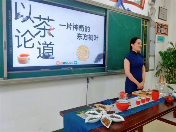 这期讲坛是由陈俊尧的姑姑给学生们带来的《以茶论道》。