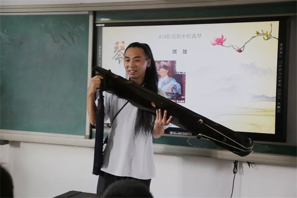 首先,望老师讲解了“琴”在古代和现代所指的不同、古琴的结构、摆放,影视剧中很多不专业、不正确的摆放和抚琴手法。接着,望老师介绍了古琴的悠久历史,还阐述“左右手指法”和“减字谱”的相关知识,教小青葵们学认减字谱。为了让小青葵们对古琴有更直观的感受,望老师邀请小青葵们上台抚琴。按照望老师教的指法,刘誉涵同学拨动琴弦,古琴发出了美妙的声音。最后,望老师给大家表演了古琴名曲《酒狂》,在美妙的琴声中结束了今天的家长讲坛。通过这堂古琴文化课,小青葵们第一次接触了古琴这门古老乐器的知识,感受到了古琴文化的意境之美。