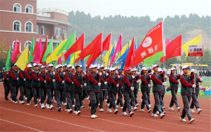 801亮剑班——国旗、校旗、会徽、吉祥物方阵。