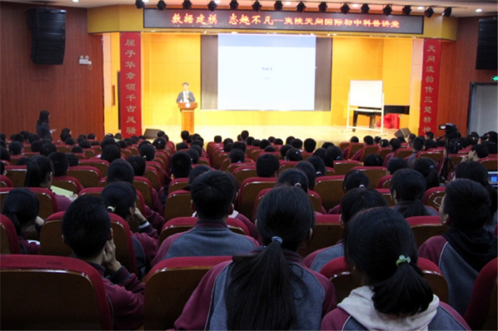 11月6日,中国科学院数学研究所研究员冯琦教授与宜昌市义务教育质量检测中心首席专家、市教科院初中数学教研员张钦博士来到天问国际初中,为九年级的同学们进行了一场头脑风暴,共同探索手机里的数学原理。