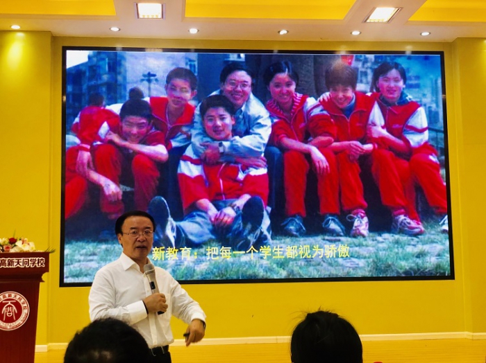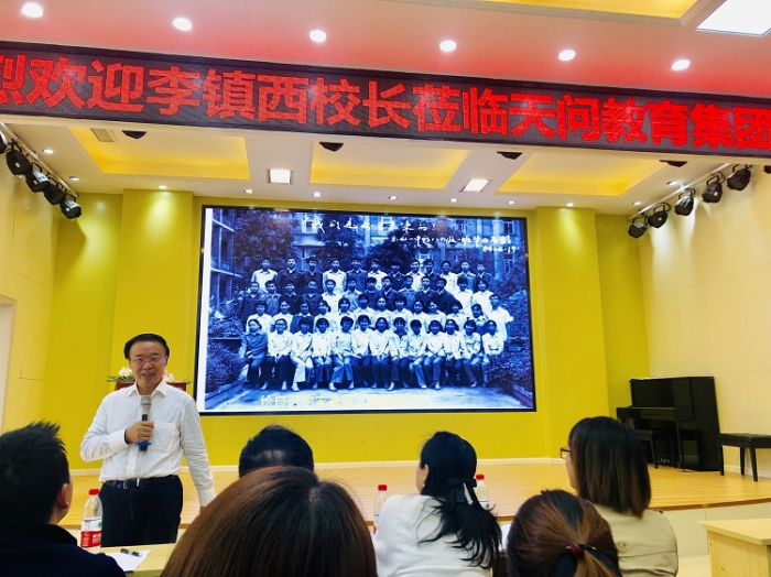 被誉为中国苏霍姆林斯基式的教师、全国著名的优秀语文教师和模范班主任——李镇西老师来到高新天问学校演讲,容纳200余人的报告厅座无虚席,周日的老师们自发聚在一起聆听教育大家的理想与情怀。
