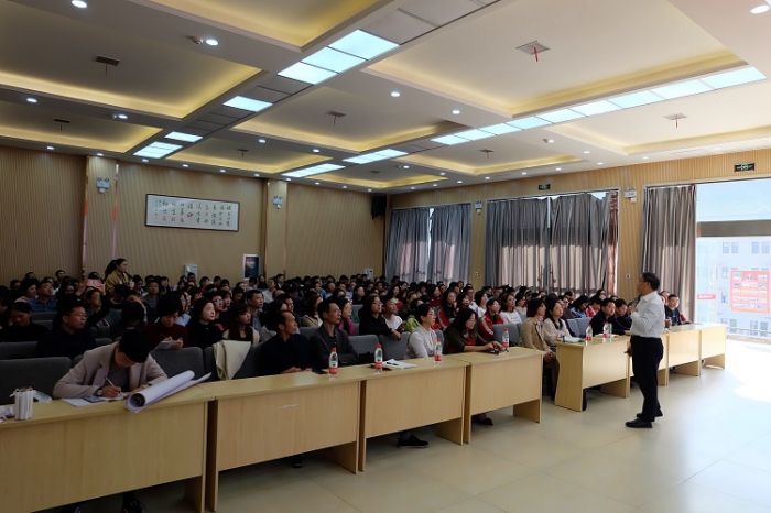 9点半,李老师在学校报告厅进行了主题为《新教育与人的幸福成长》讲演。他讲到了敖双英、王兮等老师的故事,他们因为从事新教育而改变……他说,新教育只唤醒那些有教育情怀的老师,新教育希望帮助每一个有追求的老师找到方向,汲取力量,获得成长。他谈到了张晓风 《我交给你一个孩子》:今天清晨,我交给你一个欢欣诚实而又颖悟的男孩,多年以后,你将还我怎样的一个青年?引人深思的话语让我们想到了教育的终极问题:培养什么人,为谁培养人,怎样培养人?为此,他说新教育之新,在于“推陈出新”之“新”,不是创新,新教育就是还教育本来的样子:盈庭书香,浪漫情怀,师生幸福的学习与生活状态等。新教育是真实而朴素的教育,新教育所做的一切努力都是为了最终消灭“新教育”这个概念。