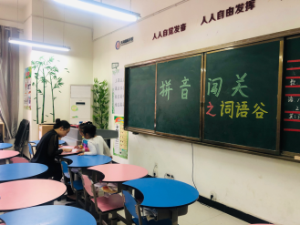 本次验收形式是口语检测。分为四个关卡:“字母岛”关从20个声母,22个带调韵母中抽查8个;“音节峡”关要求孩子读准带调音节;“词语谷”关要正确拼读音节词语;“句子峰”关则是直接拼读出老师指定的句子。