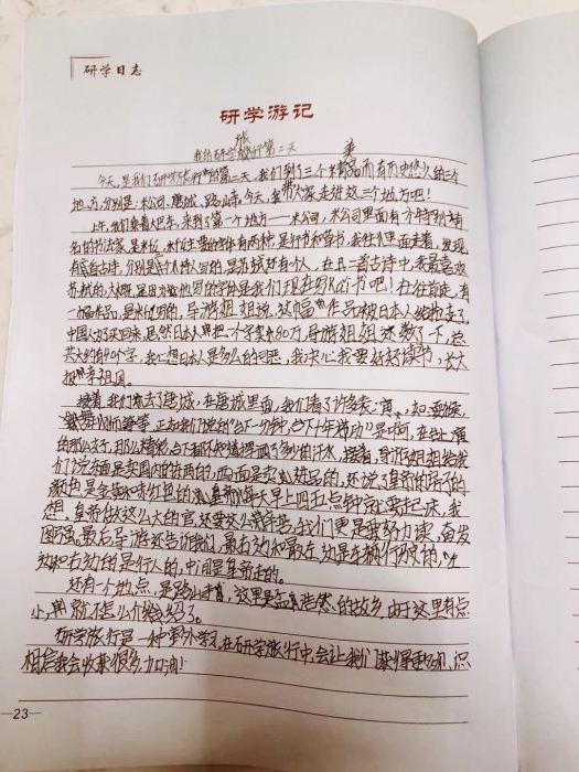 书院学子于东市登高赏美景,于西市驻足观舞狮,仿佛置身节日的街巷里,欢歌笑语!大唐的辉煌历史顿时在学生的头脑中鲜活起来,还有一些学生,把精妙的对联、诗句用笔摘录下来,带手机的学生更是不放过每一个摄相的机会,风景、建筑、人文一一都不放过。