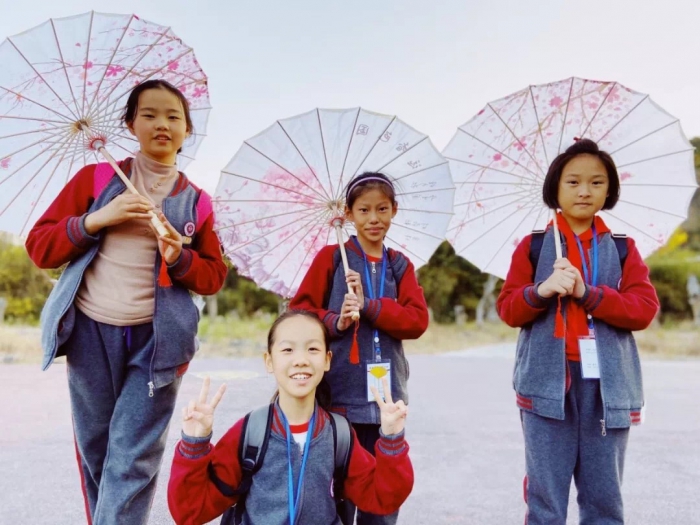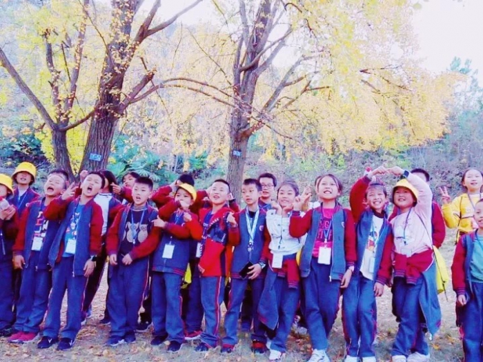 书小学子行走在幽静的山谷中,深吸清新的空气,任由阳光透过金灿灿的杏叶,暖洋洋地洒在脸上,惬意自在。满山金黄使人宁静,随处可见的石磨和民居让学生思绪翩翩,身临其中,闭上双眼,聆听千年古树的生命乐章,感悟人文历史,仿佛梦回前朝。