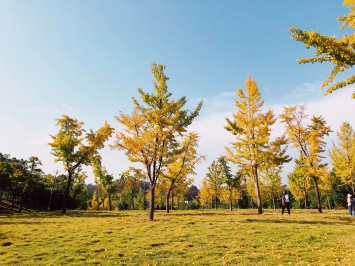 漫步十里银杏画廊,似乎游走在巨幅水墨画卷之中。沿曲径,过小桥,踏着由石磨铺成的仿古道上,蓦看银杏树参天,阅尽沧桑不计年。