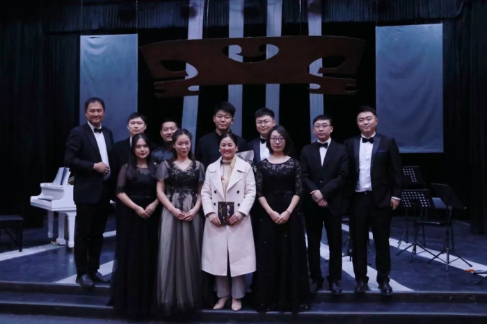 演出结束后,宜昌市音乐家协会主席梅春莲,天问教育集团理事长高正华分别与全体演职人员合影留念。