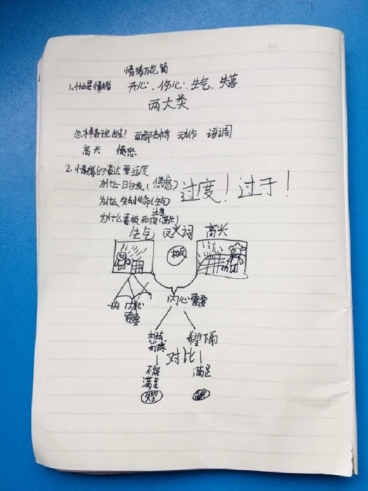 首先,情绪是什么呢?情绪是人的心理活动的重要表现,它产生于人的内心需要是否得到满足。情绪分为两大类,一类为积极的情绪,另一类为消极的情绪。其次,孙老师讲述了情绪的表达。1、我们通过面部表情动作,或者语调来表达情绪。2、情绪的表达要适度。3、对同一事件的不同情绪表达。在这里老师让同学们观看了一幅图,同样是下雨为什么会引起不同的情绪呢?同学们非常感兴趣,积极思考,踊跃举手发言。孙老师带着孩子们一起分析了原因,我们的内心需要是否被满足导致了不同的情绪。