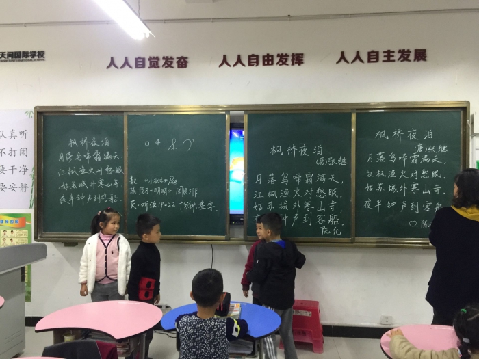 (通讯员:戴越越)11月20日,天问国际小学课程中心对教师粉笔字进行阶段性验收。开学以来,国小教师坚持每日练习粉笔字,提升个人基本功素养。经最终评比,胡多多老师获得一等奖,杨军老师获得二等奖,陈珊珊老师、史裳君老师获得三等奖。