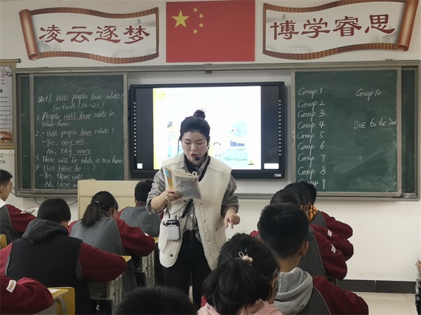 本堂课的主题是谈论未来的地球和人类生活,同时,引入了机器人这一话题。两位老师分别引用了两段关于机器人的视频,顺利引出了本堂课的话题,可谓异曲同工。周老师利用多组对比图让学生们顺利习得并掌握本堂课的目标语言,并在听力环节中充分开展小组合作,在核对完答案后让学生们小组合作完成听力部分的转述。很好地锻炼了学生语言组织和小组合作能力,学生参与度高,氛围好。孟老师在课堂实施与评价中,灵活引导学生,让不同层次的学生能够开口表达,达到了分层教学的目标。