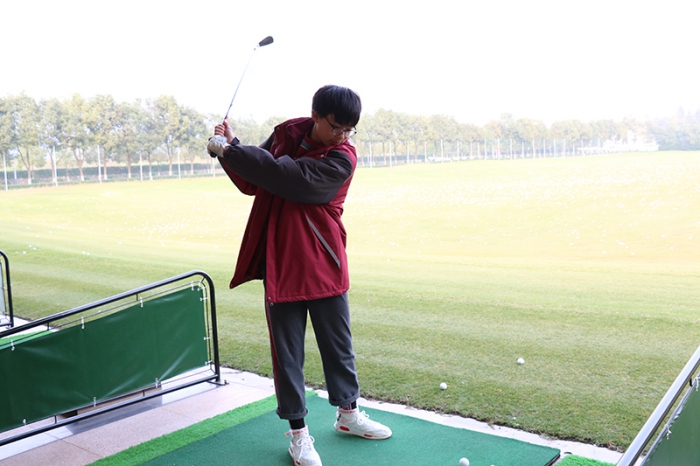 伴随着一路的欢声笑语,同学们抵达高尔夫球场,经过简单的热身运动,大家迫不及待地围绕着教练,认真地聆听高尔夫球运动技巧。高尔夫是一项“绅士的运动”,一项“礼仪的运动”,教练告诉大家高尔夫的礼仪要求可以写成厚厚的一本书,但核心思想就是“为他人着想”,希望同学们在学习高尔夫球的同时更重要的是领悟这项运动的精神。
