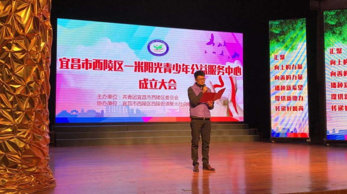 2019年11月30 日下午,校团委书记王正珊老师,校学生会青年工作服务部,教师青年志愿者代表夏晨风、陈震、熊仁华老师,学生青年志愿者代表一行参与了宜昌市西陵区一米阳光青少年公益服务中心成立大会。