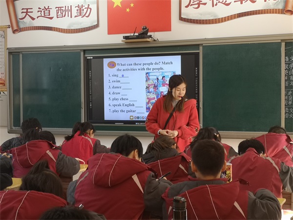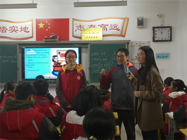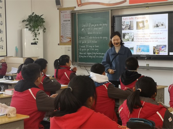 三位教师的英语课堂都展现了快节奏、大容量这一亮点。李春妮老师执教了八上Unit 10 “if”条件状语从句的听说课。李老师以学生为主体,站在学生的视角精心设计了课堂的每一个环节。她以猜字母和hot potato的游戏教授新单词和重点句式。她亲切幽默的互动和点评,让学生们忘记了知识的难度,完全沉浸在学习的游戏中。屈蜜老师执教了七下 Unit 1 关于情态动词can的听说课。她以谈论老师——谈论自己——谈论同学作为课堂主线,循序渐进,环环相扣,很好地体现了以生为本的课堂参与度和练习度。陈梦莹老师执教了九年级Unit 13 关于环境保护的听说课。她以一段环保视频顺利引出话题。在教授新词新句时,她用丰富的图片让学生们充分想象和发挥,体现出了一定的延展度。在听说环节,她充分整合教材,将两段对话设计成中考题型——听填表格并转述,充分训练了学生的听说核心能力。