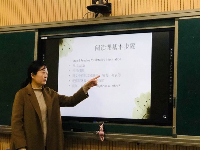 展示结束后周艳玲老师进行了反思性说课,提出了在教学设计及课上所面对的问题和困惑。基于此市教研员周敏老师带来了关于阅读课如何上的专题讲座。
