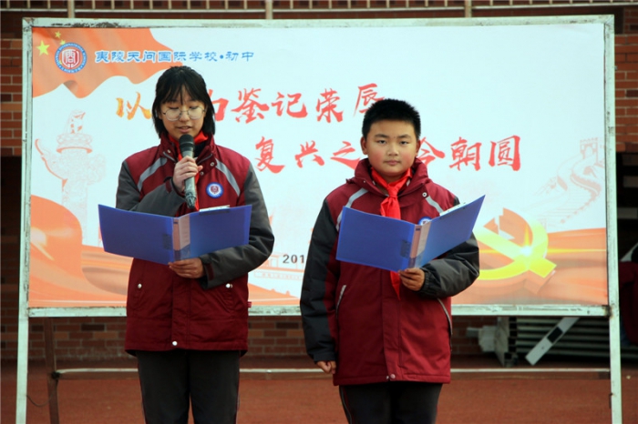 2019年12月13日,是第六个“南京大屠杀国家公祭日”,当天上午,夷陵天问国际初中全体师生在操场上集会,共同缅怀历史,举行了一场主题为“以史为鉴记荣辱,复兴之梦今朝圆”的纪念活动。