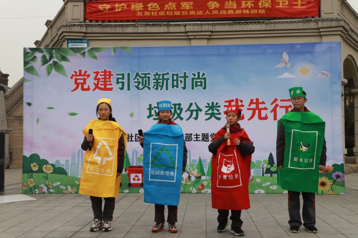 本次活动由学校党员干部、七年级优秀学生参加,活动的内容包括:开展垃圾分类有奖竞答、唱环保知识宣传歌曲活动、垃圾分类小品节目。帮助社区居民更好了解垃圾分类到底如何做。