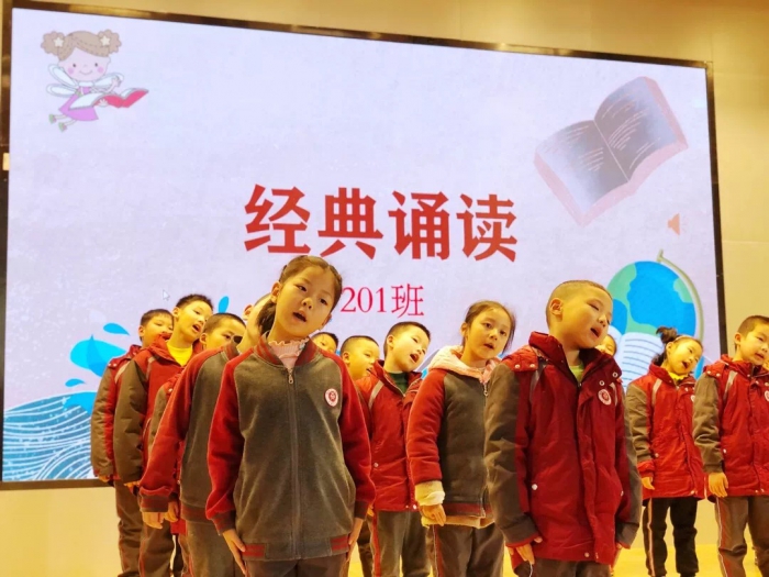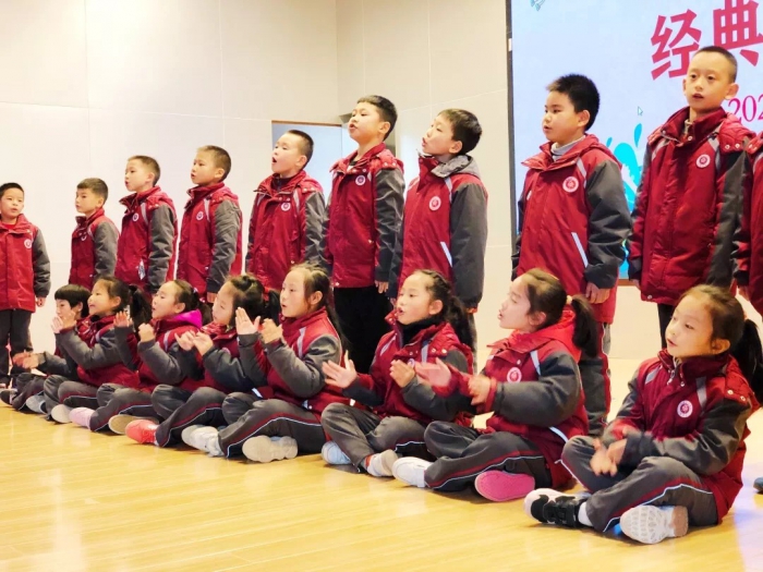 活动中,低年段同学将《三字经》《弟子规》通过配乐诗朗诵的形式展现出来,诗韵朗朗,如歌声一般动听。