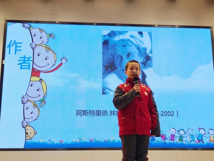 401班刘贽恺同学介绍了《长袜子皮皮》中主人公各种奇怪的称谓,随手举起爸爸的大力气特点。