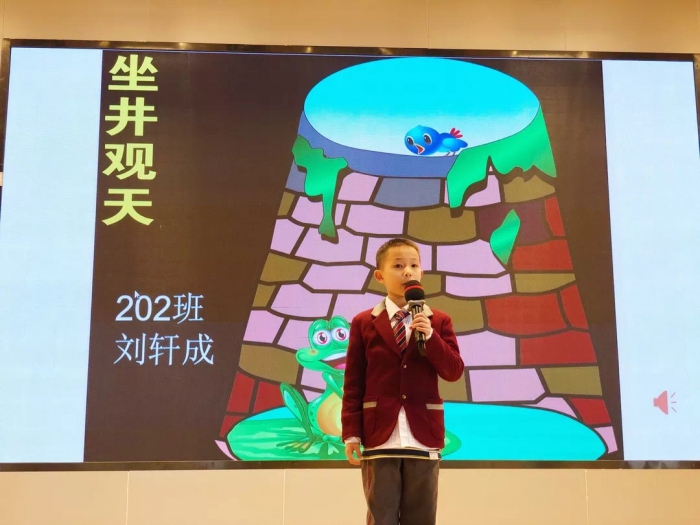202班刘轩成同学绘声绘色的为大家表演了《坐井观天》,纯真可爱、口齿清晰、表述流畅,令称赞之声不绝于耳。