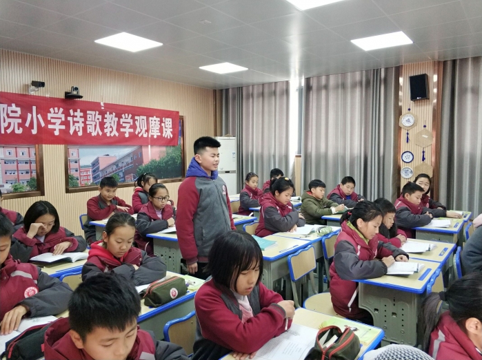 为了深入研究书院小学《诗润童心》诗歌读本古诗文教学策略,提高古诗词学习效率。12月5日下午,天问书院小学组织开展了诗歌教学观摩活动,天问书院校区名誉院长顾景荣院长为全体教师展示了《戏答元珍》《过零丁洋》古诗教学课。