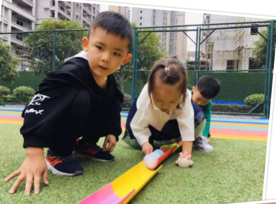球球通过孩子们拿的管道,进行接力比赛。既锻炼了孩子们的平衡能力,又锻炼了孩子们的合作能力,还增进了孩子们之间的感情呢!