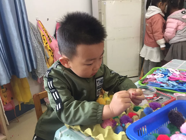 谁说球球只能在户外玩的,我们班的区角里面也有各种球呢!你看我们球球手链马上就要穿好了。要穿好这个手链我需要很细心、很耐心还需要我静下心来才可以完成哦!