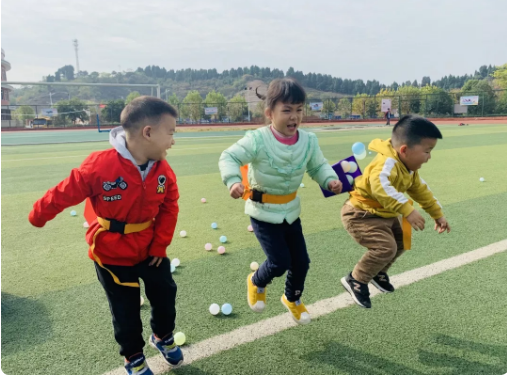 母鸡下蛋是孩子们最爱玩的游戏之一,孩子们通过各种方式把盒子里的“蛋”下下来,体验体育活动中合作的乐趣,增强竞争意识,还锻炼了弹跳能力呢!