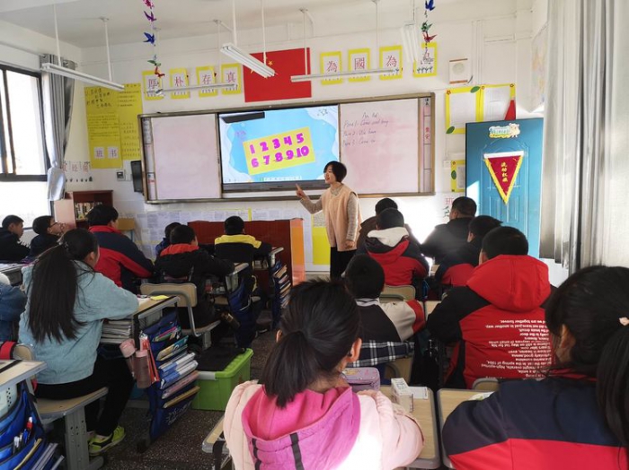 曹美蓉老师通过英文歌曲导入,课堂环环紧扣,既突出教学重点,又能寓教于乐。