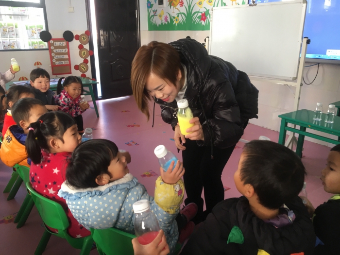 长乐坪镇中心幼儿园肖美满老师执教中班《颜色变变变》一课,她在活动中让孩子们通过实验发现颜色变化,引导幼儿自主探索。