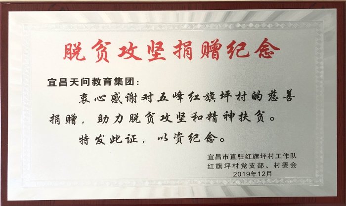 宜昌天问教育集团是湖北省首批五星级的民办学校。学校创办之初,高正华理事长就怀着教育兴国、回报家乡的赤子之心,立志把学校打造成具有社会责任感、具有公益性的民办学校。“扶贫工作和发展民办教育殊途同归,都是事关老百姓的福祉,都是为了民族的振兴”,高理事长表示,“作为市政协委员和教育工作者,有责任、有义务为扶贫工作做一些力所能及的实事”。