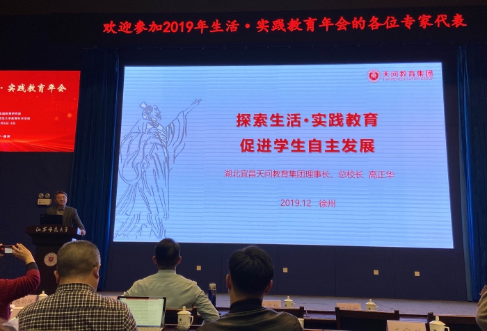 12月7日,2019年生活•实践教育年会在江苏师范大学召开。天问教育集团作为武汉大学“生活·实践”教育学研究中心的实践基地应邀参会,集团高正华理事长在会上作交流发言。