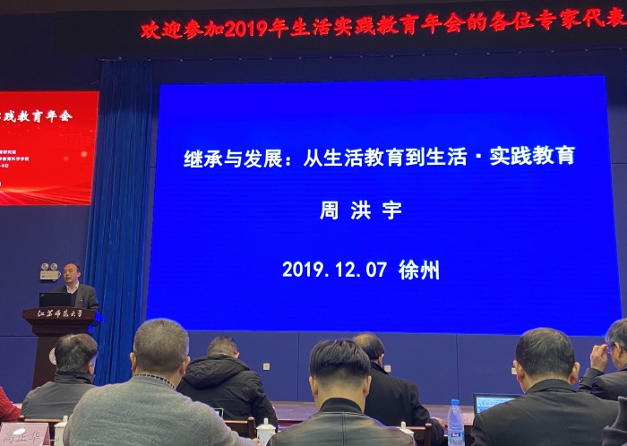 年会上,第十三届全国人大常委会委员,湖北省人大副主任,中国教育学会副会长、华中师范大学周洪宇教授进行了《继承与发展:从生活教育到生活•实践教育》的主题演讲。周教授指出,在当下,我们更应该结合当代教育的现状践行与发展生活•实践教育,倡导培养真善美的时代新人,让教育创造美好人生。