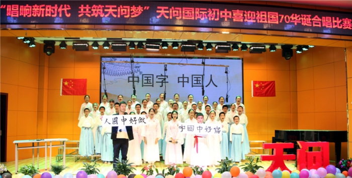 夷陵天问国际初中于9月29日至30日举行了“唱响新时代 共筑天问梦”合唱比赛。少年强则国强,现在开始从我做起做栋梁;我和2035有个约,约在新征途的新起点;我们都是追梦人,千山万水,奔向天地跑道;歌唱我们亲爱的祖国,从今走向繁荣富强;我最亲爱的祖国,你是大海永不干涸……一首首超燃的歌曲,唱响时代主旋律。