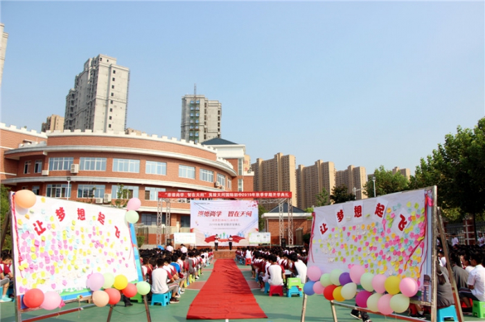 9月2日,夷陵天问国际初中2019年秋季学期“崇德尚学 智在天问”开学典礼盛大举行。