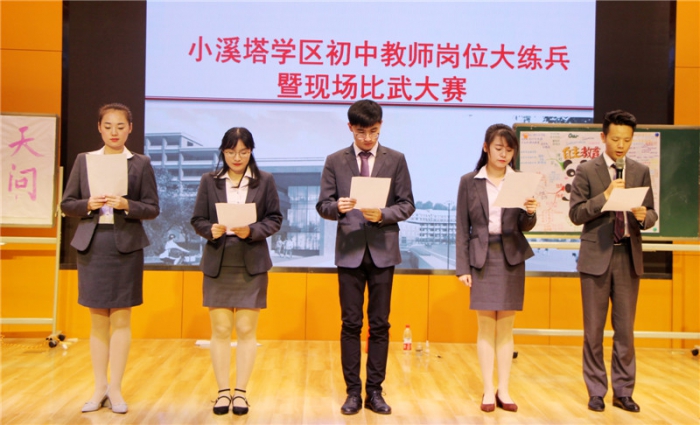 11月1日,小溪塔学区初中教师岗位大练兵暨现场比武大赛在夷陵天问国际初中举行,来自东湖初中、上海中学、鄢家河初中和天问国际初中的16位教师参加了此次比赛,共进行了三笔字、普通话、预设性说课、教学特长展示和教育技术能力笔试等5项内容的角逐,国初5位教师组成的团队在各项活动中表现突出,一举夺魁,其中张鹏程和陶妍君两位老师因成绩优秀获得个人一等奖。