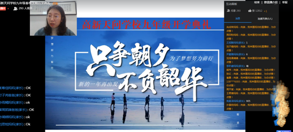在开学典礼讲话中,向端主任强调网络课程学习不同于在校学习,可能会遇到网络和设备上故障,不可抱怨,坚持学习。在这个特别时期完成学习上的“弯道超越”。