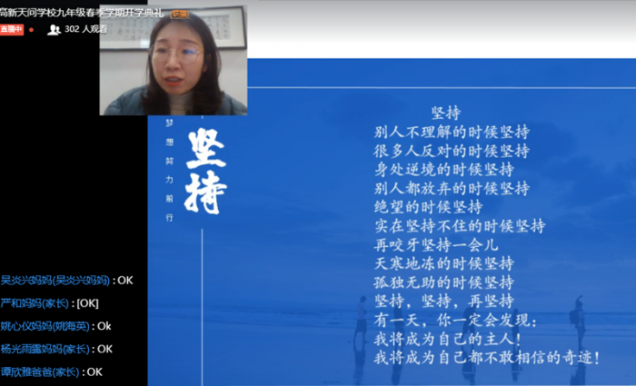 在熟悉的旋律《天问之歌》中开启了这次特别的开学典礼。向端主任首先送给孩子们一首小诗《坚持》。