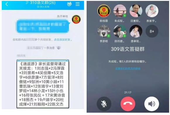 刘凤鸣老师组织学生每天通过语音打卡学习,每天晚上7:30—9:30是孩子们的梳理盘点、答疑解惑时间,他们会将自己学习清单、问题发给老师,老师灵活运用文字、语音、视频等多种方式予以解答。