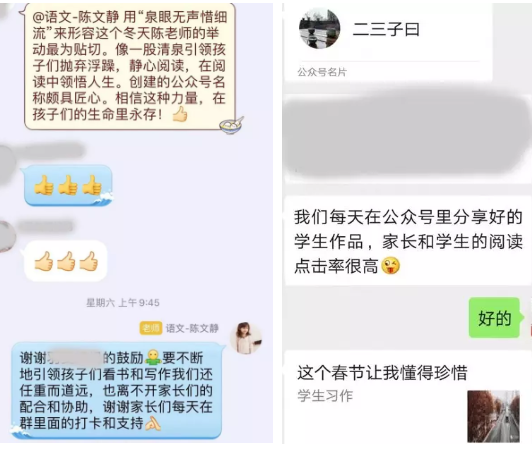 国初语文陈文静老师为了丰富学生的寒假生活,要求同学们在群内进行背诵和阅读打卡,她专门创建了一个微信公众号,用以发表同学们的优秀作文。