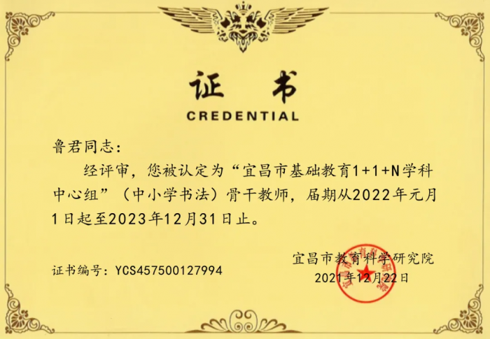 【喜报】天问夷小两位教师被认定为“宜昌市基础教育1+1+N学科中心组”骨干教师