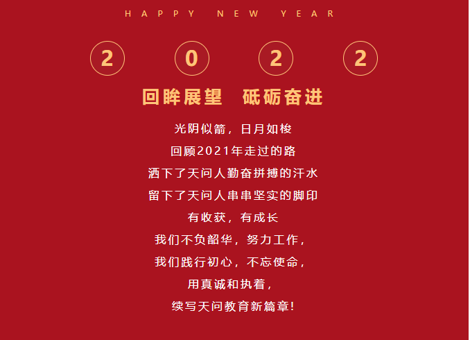 光阴似箭,日月如梭 回顾2021年走过的路 洒下了天问人勤奋拼搏的汗水 留下了天问人串串坚实的脚印 有收获,有成长 我们...